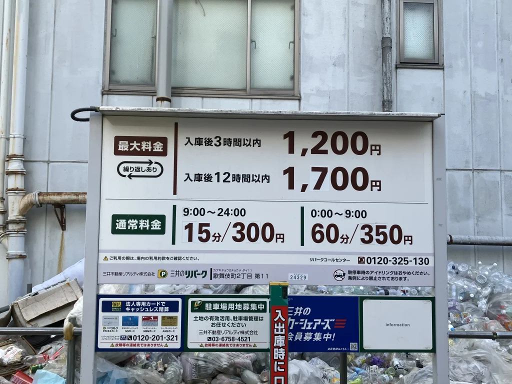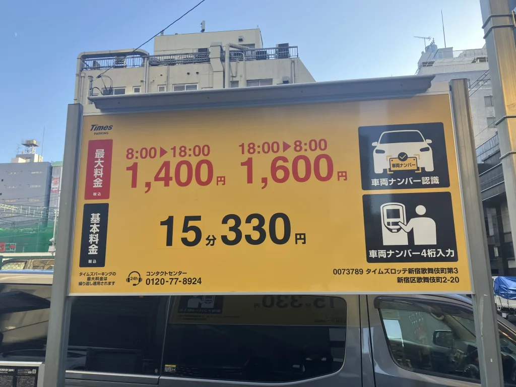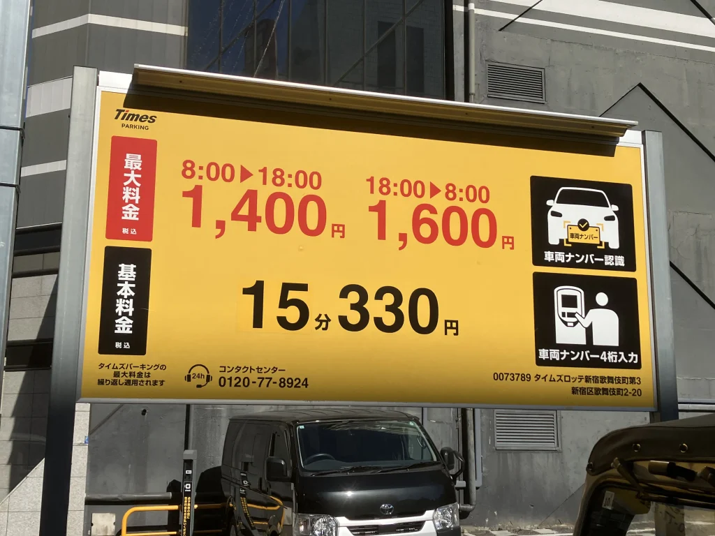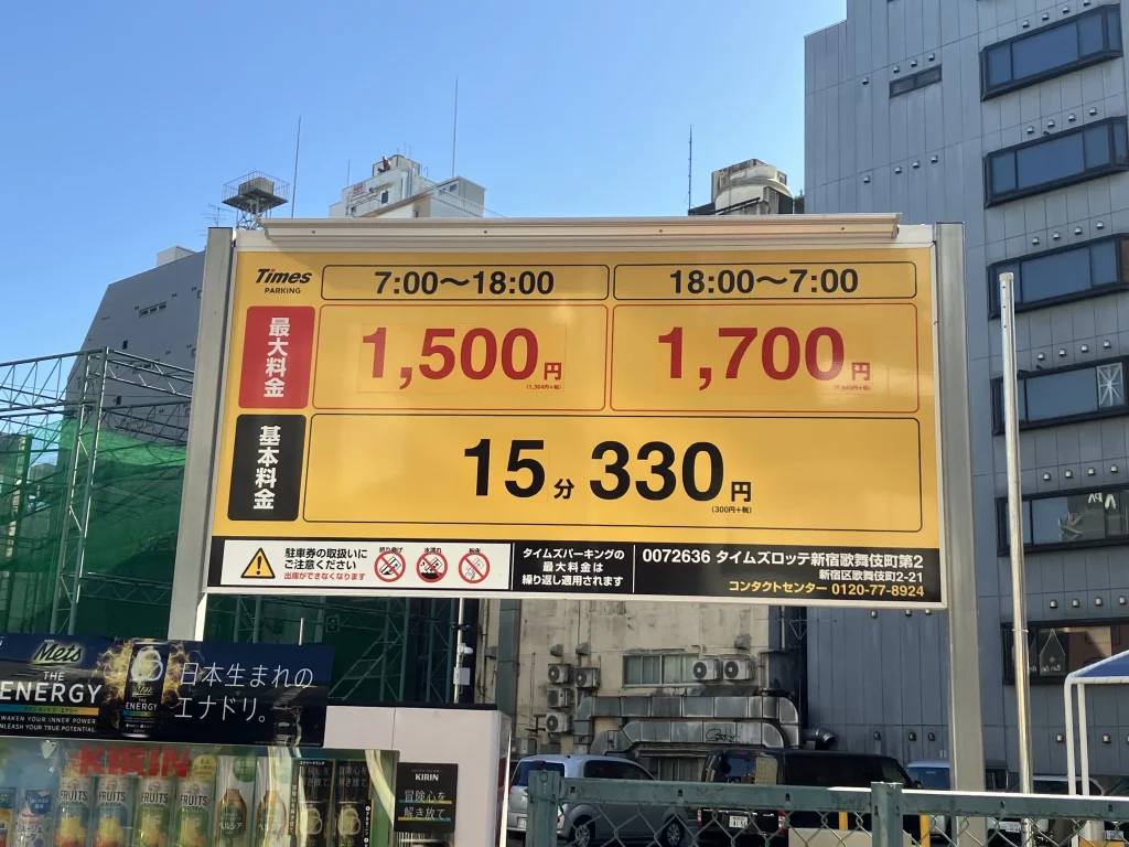 歌舞伎町の駐車場は夜間料金のほうが高いのが特徴です。