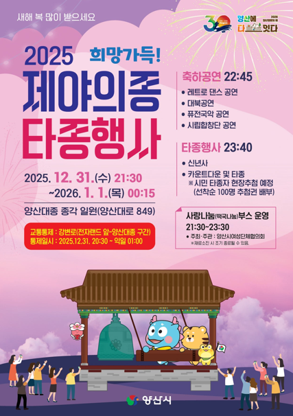 市の公式行事で「除夜の鐘 打鐘行事(제야의종 타종행사)」と言います。