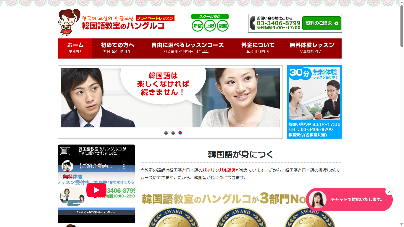- ○ 東京の初心者向け韓国語教室なら「ハングルちゃん」